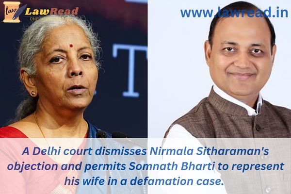 A Delhi court dismisses Nirmala Sitharaman's objection and permits Somnath Bharti to represent his wife in a defamation case.