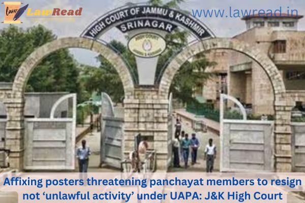 Affixing posters threatening panchayat members to resign not ‘unlawful activity’ under UAPA: J&K High Court