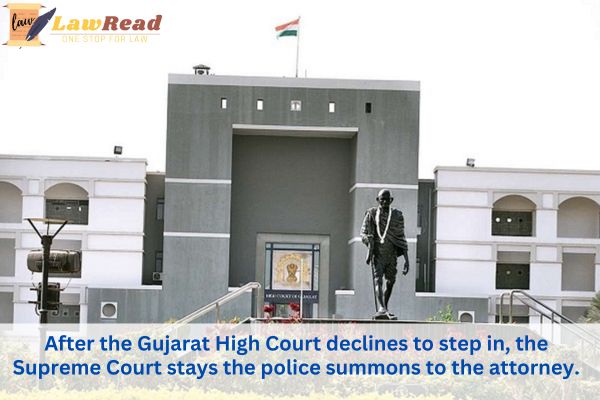 After the Gujarat High Court declines to step in, the Supreme Court stays the police summons to the attorney.