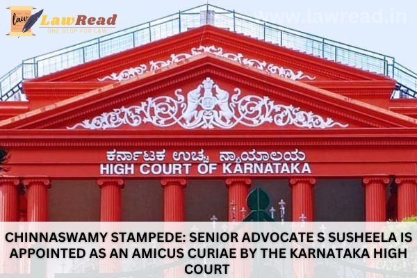 Senior Advocate S Susheela was named as an amicus curiae by the Karnataka High Court on Monday to support the Court in the suo motu case that was recently started in relation to the stampede that occurred at Chinnaswamy Stadium on June 4 [Suo Moto v. State of Karnataka].
