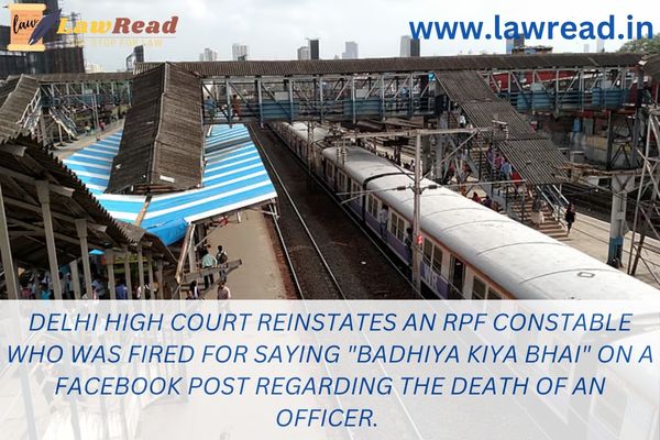 Delhi High Court reinstates an RPF constable who was fired for saying "Badhiya Kiya Bhai" on a Facebook post regarding the death of an officer.