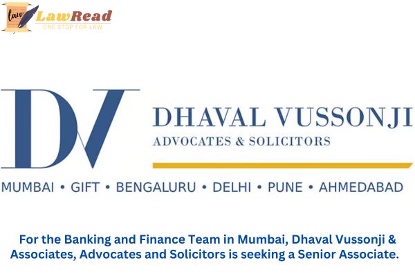 For the Banking and Finance Team in Mumbai, Dhaval Vussonji & Associates, Advocates and Solicitors is seeking a Senior Associate.