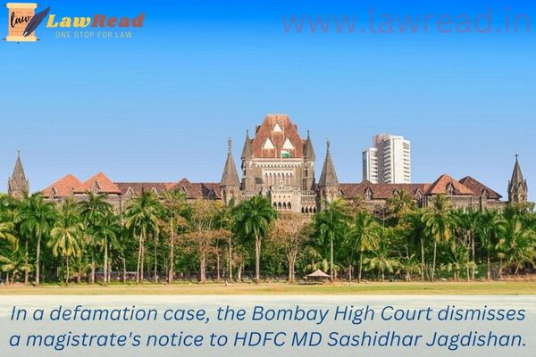 In a defamation case, the Bombay High Court dismisses a magistrate's notice to HDFC MD Sashidhar Jagdishan.