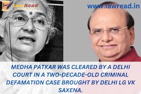 In a two-decade-old criminal defamation case brought by Delhi Lieutenant Governor VK Saxena, activist Medha Patkar was found not guilty by a Delhi court on Saturday.
