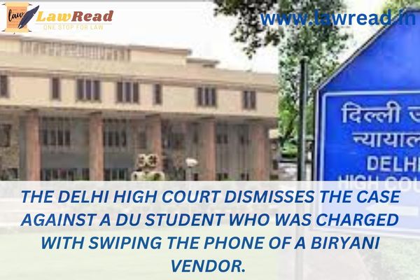 The Delhi High Court dismisses the case against a DU student who was charged with swiping the phone of a biryani vendor.