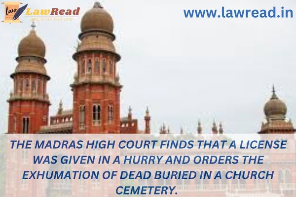 The Madras High Court finds that a license was given in a hurry and orders the exhumation of dead buried in a church cemetery.