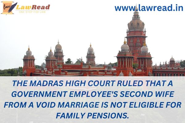 The Madras High Court ruled that a government employee's second wife from a void marriage is not eligible for family pensions.