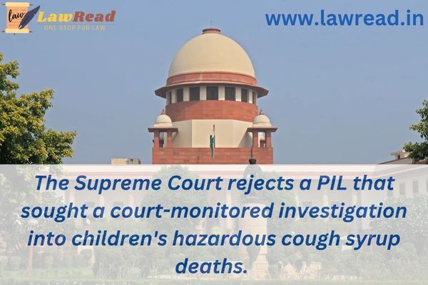 A Public Interest Litigation (PIL) petition asking for an impartial, court-monitored investigation into the deaths of several children, which were purportedly brought on by tainted cough syrup, was denied by the Supreme Court on Friday [Vishal Tiwari v. Union of India].
