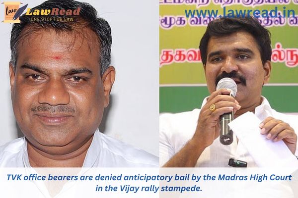 TVK office bearers are denied anticipatory bail by the Madras High Court in the Vijay rally stampede.